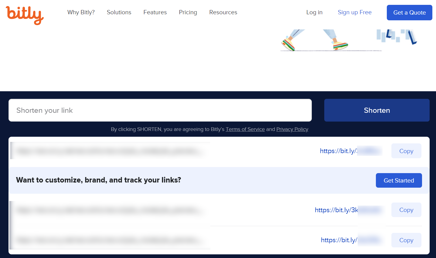 빈칸(Shorten your link라고 써있는 곳)에 단축하길 원하는 URL 주소를 입력한 다음, 'Shorten' 버튼을 누르면 됩니다.