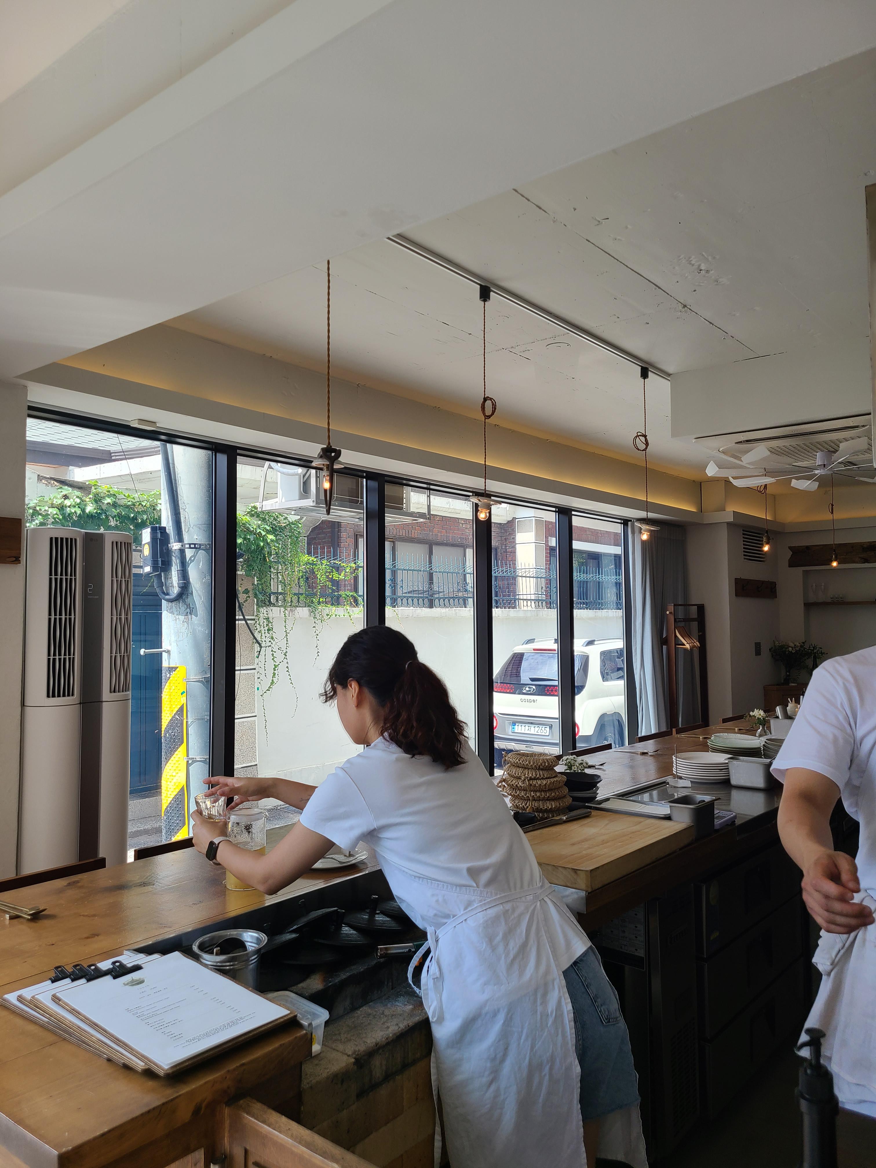 우리는 주말 런치코스 13:30 타임으로 예약하고 13:15-20분쯤 방문했는데, 전 타임에 남아있던 한분이 식사를 마치고 막 나오는 시점이었다.