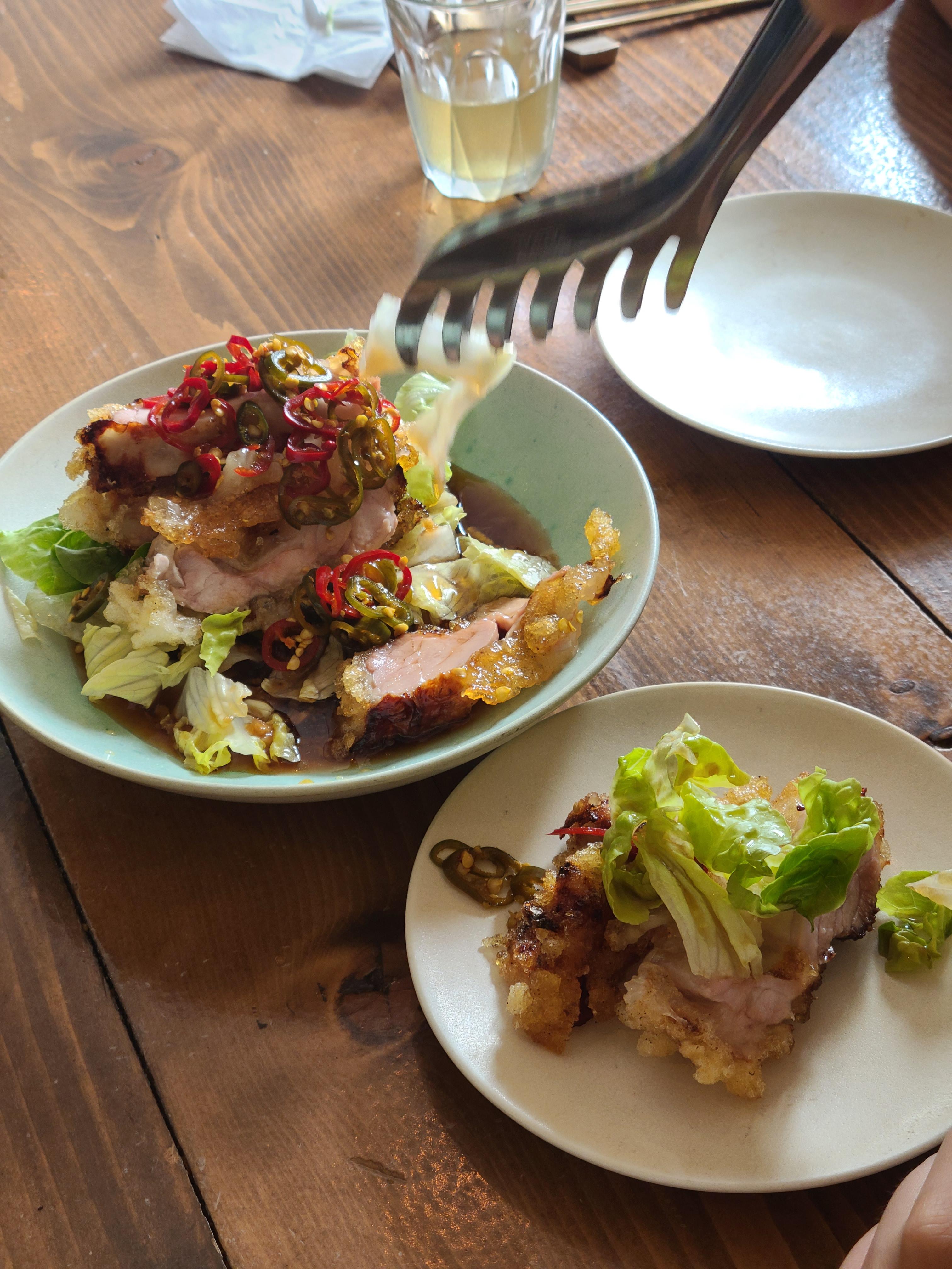 유린기는 같이 나온 소스에 묻혀 먹으면 된다. 쫀득하면서도 유들유들한 게 맛있었는데, 여기에 상추랑도 같이 싸서 먹으면 바삭한 식감이 나서 더 맛있다!^^